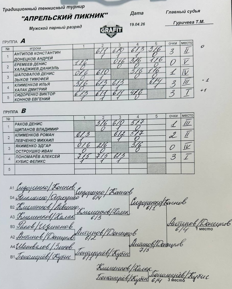 Поздравляем призеров мужского парного турнира «Апрельский пикник»!